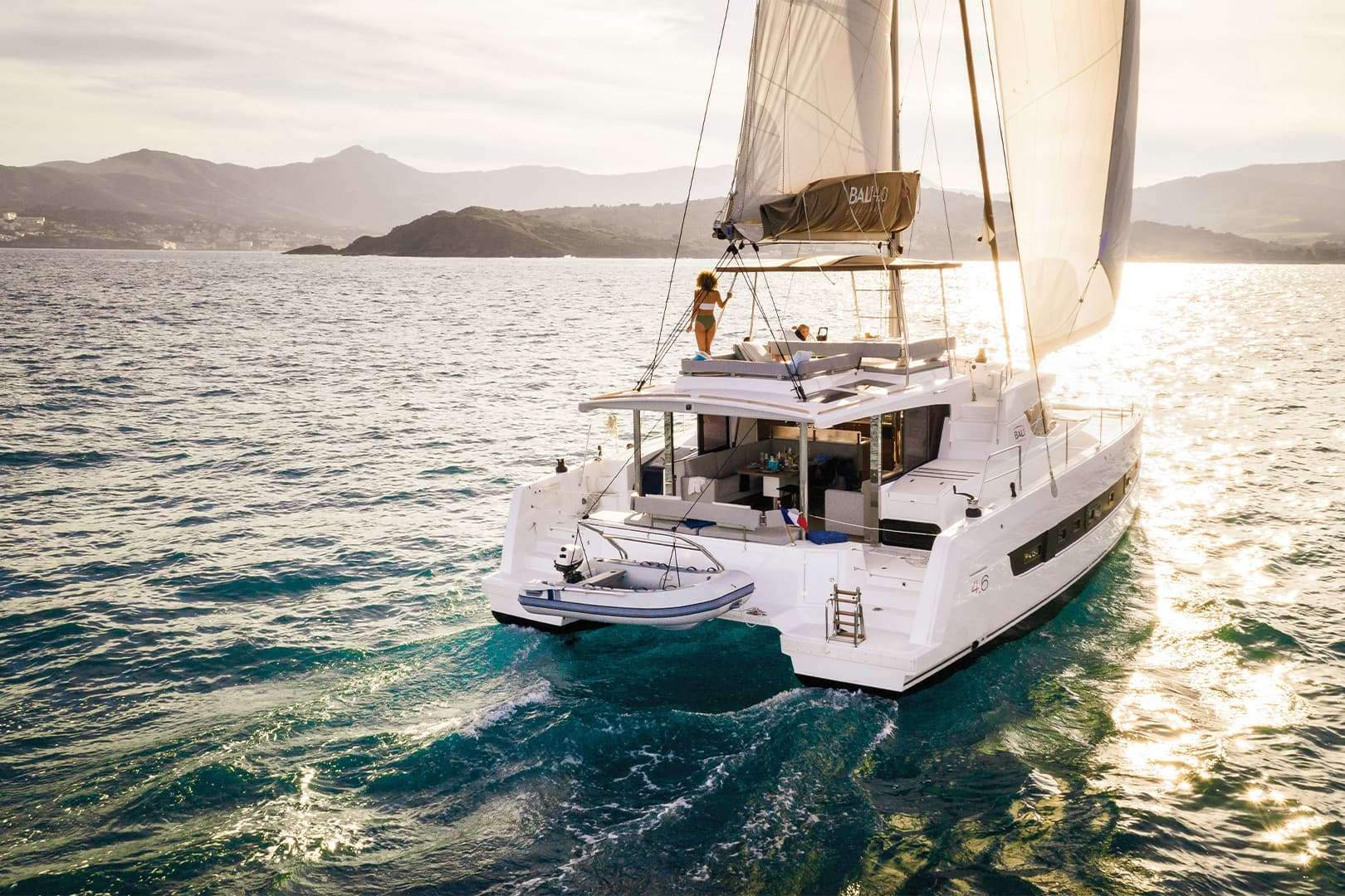 Bali 4.6 combines modular front and aft cockpits, a complete cooking area at the back, a practical and safe access to the sea, still giving Nautal Design large volumes in the salon to fully express themselves. With its double access, the Flybridge is dedicated both to maneuvering and relaxing. Helm station offers protection and visibility. With two Yanmar engines of 57 HP with turbo for quick navigation and greater maneuvering in the harbor.